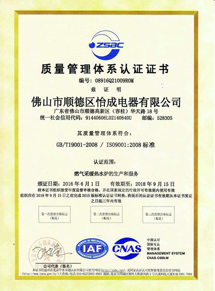 佛山市順德區(qū)怡成電器有限公司屬下有八部一室,三大車間,工程技術(shù)人員和管理人才100多人,一大批現(xiàn)代化五金生產(chǎn)設(shè)備,自動噴涂生產(chǎn)線和功能齊全的現(xiàn)代化生產(chǎn)線,公司為做好壁掛爐產(chǎn)品,從一開始就選用高、精、尖的生產(chǎn)設(shè)備和檢測設(shè)備和自動翻版檢測設(shè)備。連續(xù)配氣系統(tǒng)設(shè)備,NOX綜合測試裝置,五合一全電腦綜合測試設(shè)備儀器,測試的準(zhǔn)確性、可靠性及耐久試驗都在同行具有水平。