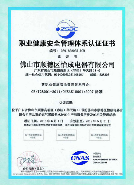 企業(yè)通過IS09001:2000國際體系認(rèn)證,并全面嚴(yán)格按照IS09001:2000體系進(jìn)行運營管理。企業(yè)是中國土木工程學(xué)會燃?xì)夥謺T單位、廣東家電商會會員單位、順德燃?xì)饩呱虝T單位、順德家電商會會員單位,公司是國家出口產(chǎn)品二類企業(yè),公司主要產(chǎn)品出口北美和歐洲地區(qū),公司一貫堅持質(zhì)量、信譽至上...